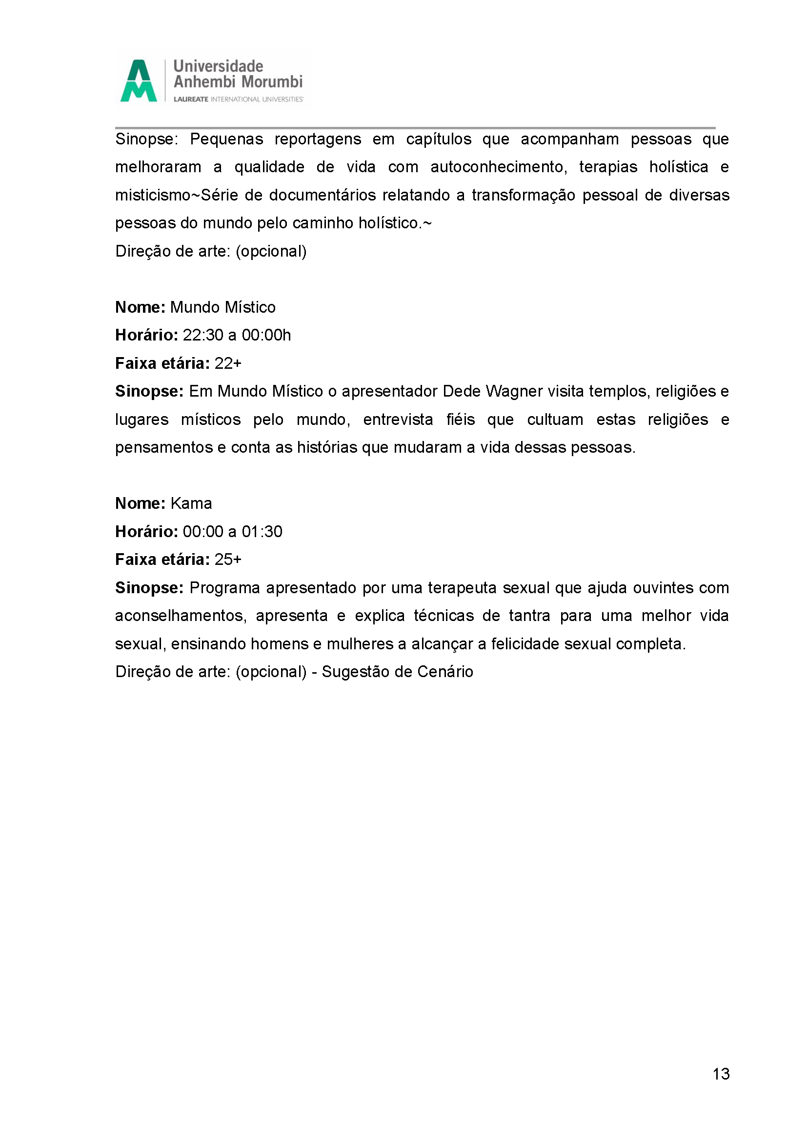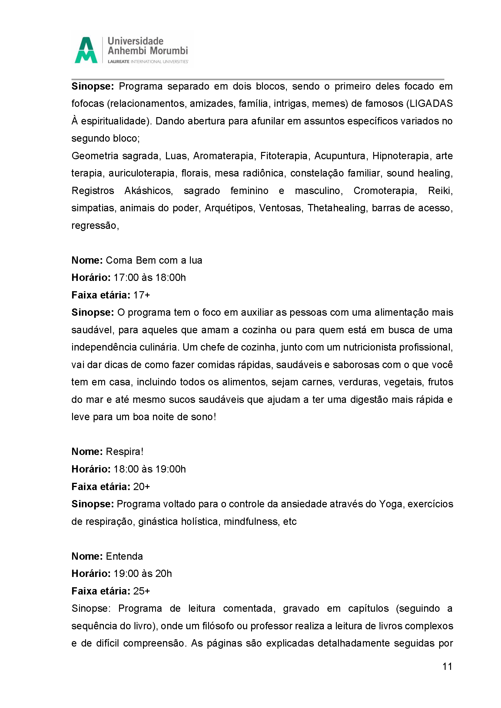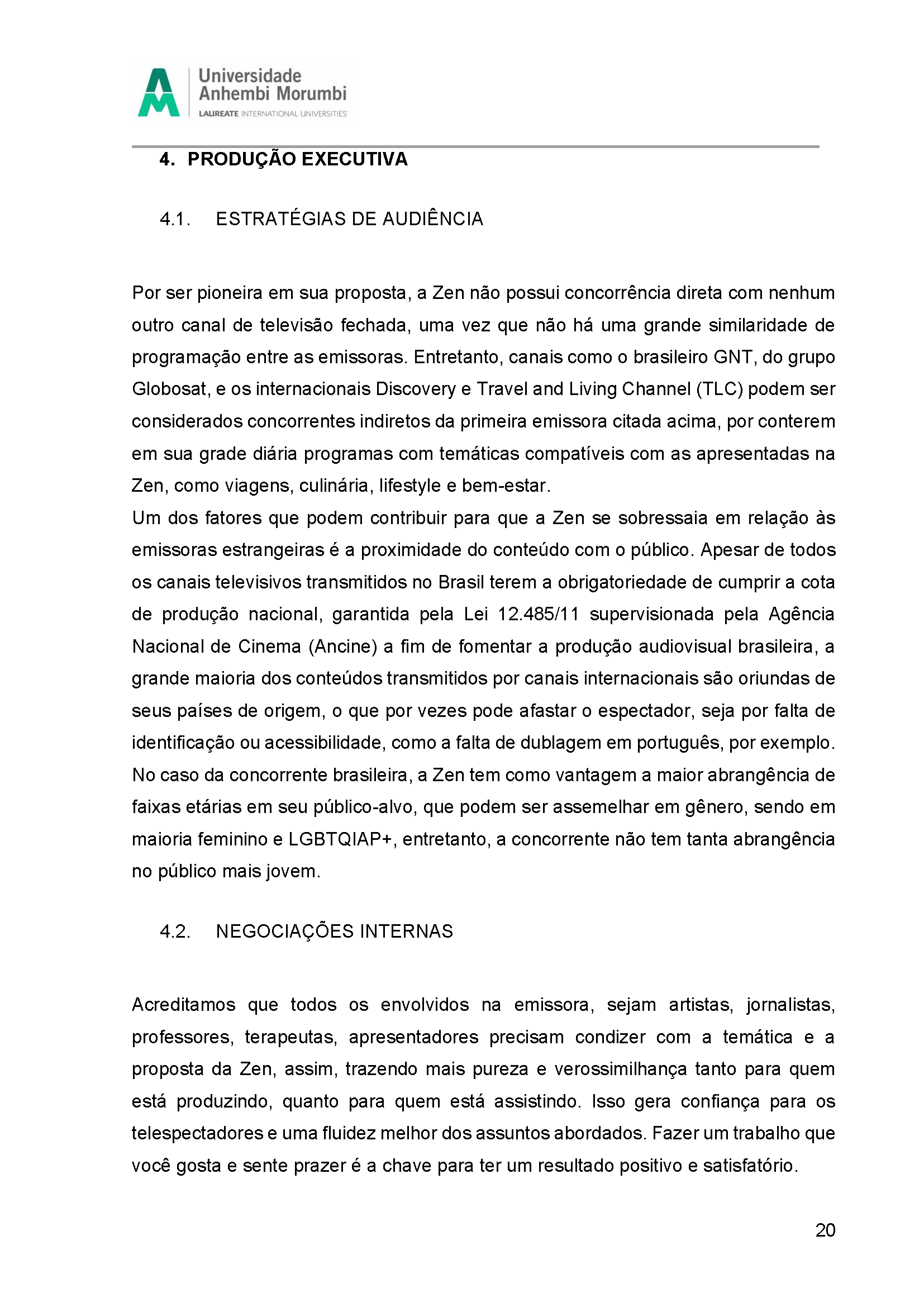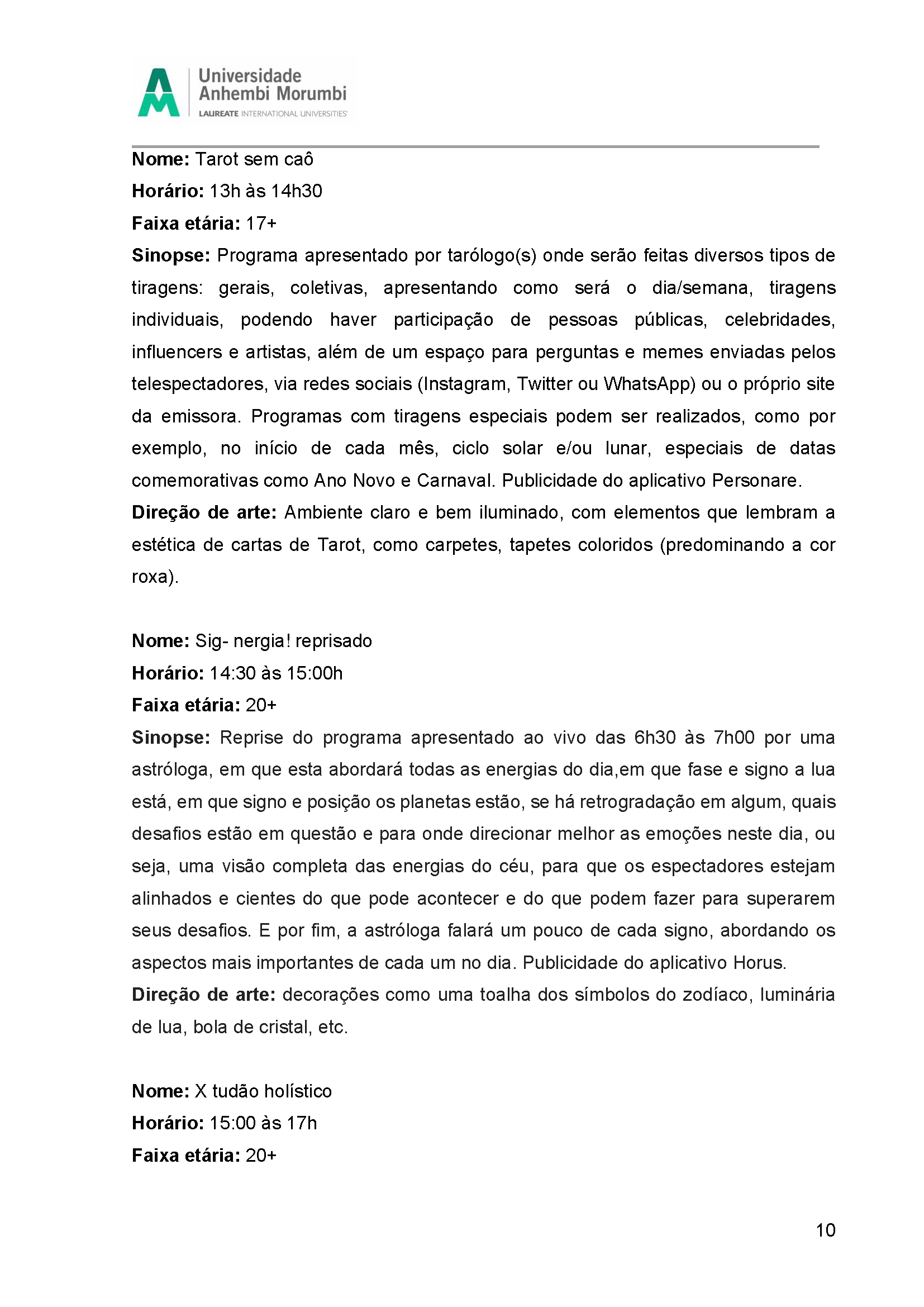 Fruto da disciplina de Programação, Audiência e Negócios foi criado como projeto piloto a Emissora Zen, que possui como base abordar o misticismo e autoconhecimento, estando junto com o seu expectador, acolhê-lo e introduzir em sua rotina o autoconhecimento, tanto pelo lado pessoal, como profissional e espiritual. Com isso, busca-se o equilíbrio entre corpo, alma e mente, sendo influenciada muito pela astrologia e o misticismo juntamente com a religiosidade.